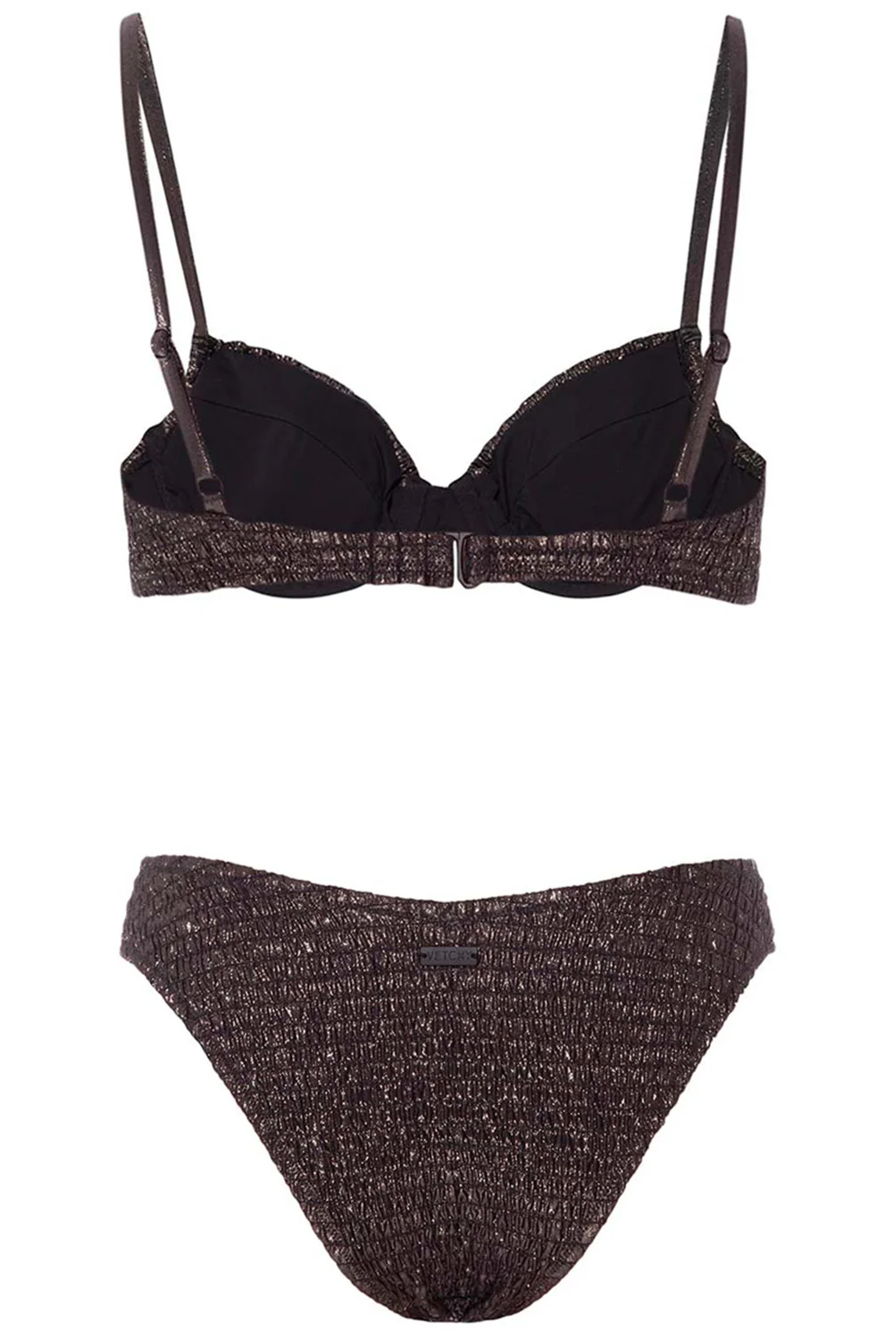 This bikini is made with a special embroidery technique to gather the swimwear fabric. The result is a beautiful texture that hugs the body in a flattering way. Amongst all of our styles, this bikini is the most intricate to make and therefore supplies are limited. Includes removable pads for extra lift and shape.