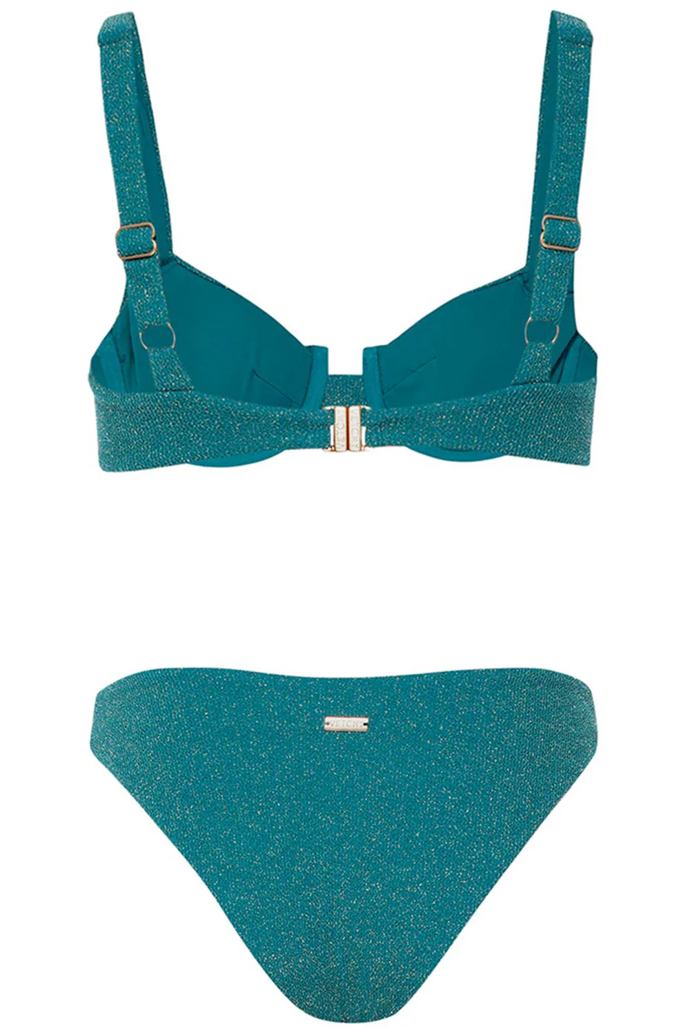 Sparkles in the sunshine! Made in our special edition rib with gold lurex threads woven into the fabric. Includes removable pads for extra lift and shape. *Please read care instructions for LUREX fabric.